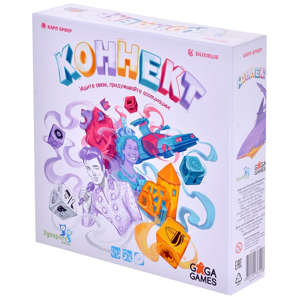 Коннект предлагает просто найти связь между двумя значками на кубиках. Вот только эти пары составляются случайным образом и могут оказаться очень неожиданными. Отыщете ли вы нечто, объединяющее научную фантастику и известную поп-группу? А печаль и хищника? Одно слово, устойчивое выражение или изощрённое трактование смыслов — используйте своё воображение, чтобы подобрать ответ на каждую из десяти комбинаций за три минуты и постарайтесь совпасть с другими игроками, чтобы получить больше очков и одержать победу!